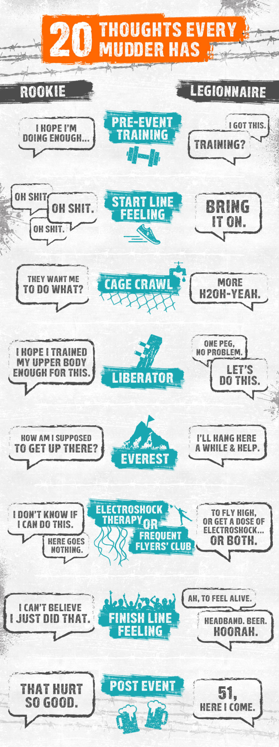 If you’ve ever wondered what goes through the mind of a new Mudder and one who’s done almost 50 events, it goes something like this…